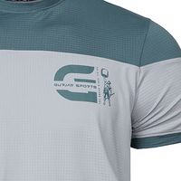 Ice Grey and Teal panel T-shirt with 'G' logo and 'GURJAR SPORTS' branding. Sleek, athletic look.